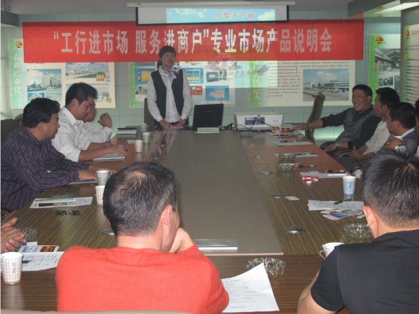 2012年10月26日下午,工商银行产品推介会在青草巷市场三楼会议室举行,邀请了30多名市场优质客户到场参加。