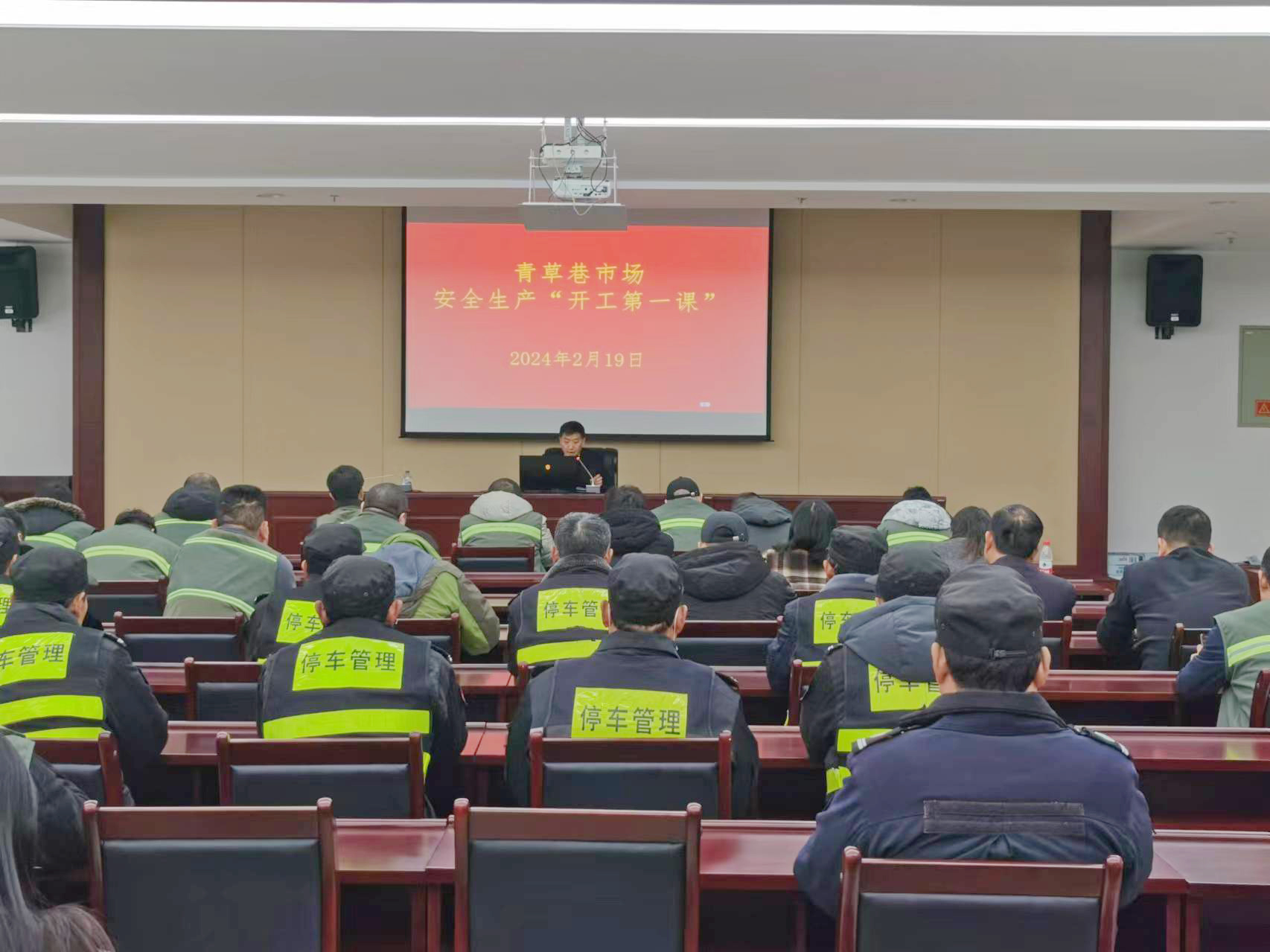为进一步强化全体干部职工的安全生产意识,切实做好市场春节后复工复产的安全生产工作。2024年2月19日下午,青草巷市场组织召开安全生产“开工第一课”,由市场副总经理李建兵授课,各部门负责人、外包服务单位负责人、管理人员等共47人参加。