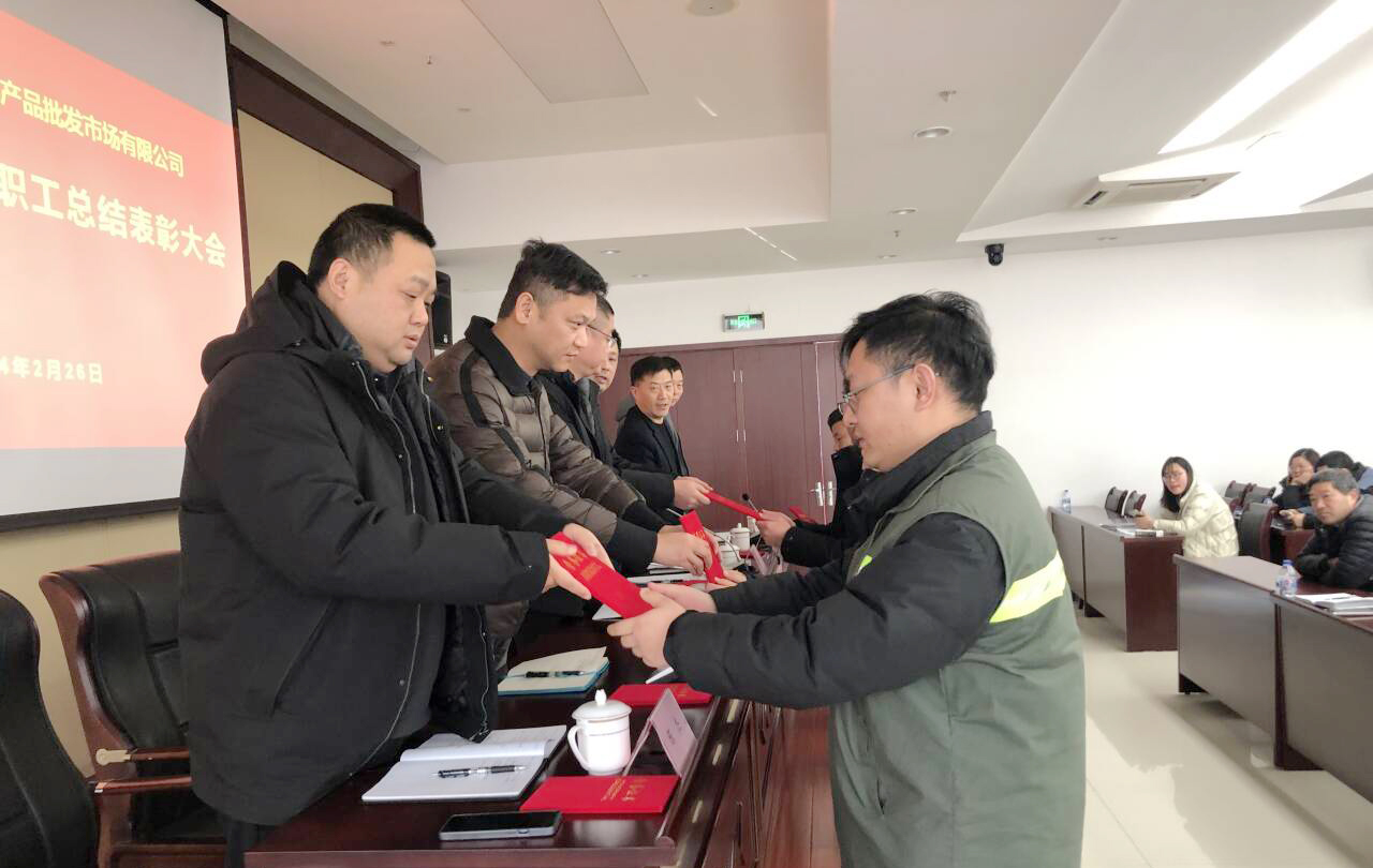 2月26日下午,市场召开2023年度全体职工总结表彰大会。市场党支部书记、总经理赵志忠,领导班子成员、中层干部和职工共116人参加会议。市场党支部副书记葛安全主持会议。