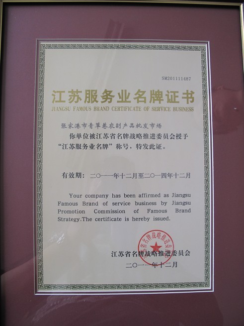 热烈祝贺青草巷市场通过江苏省服务业名牌复评