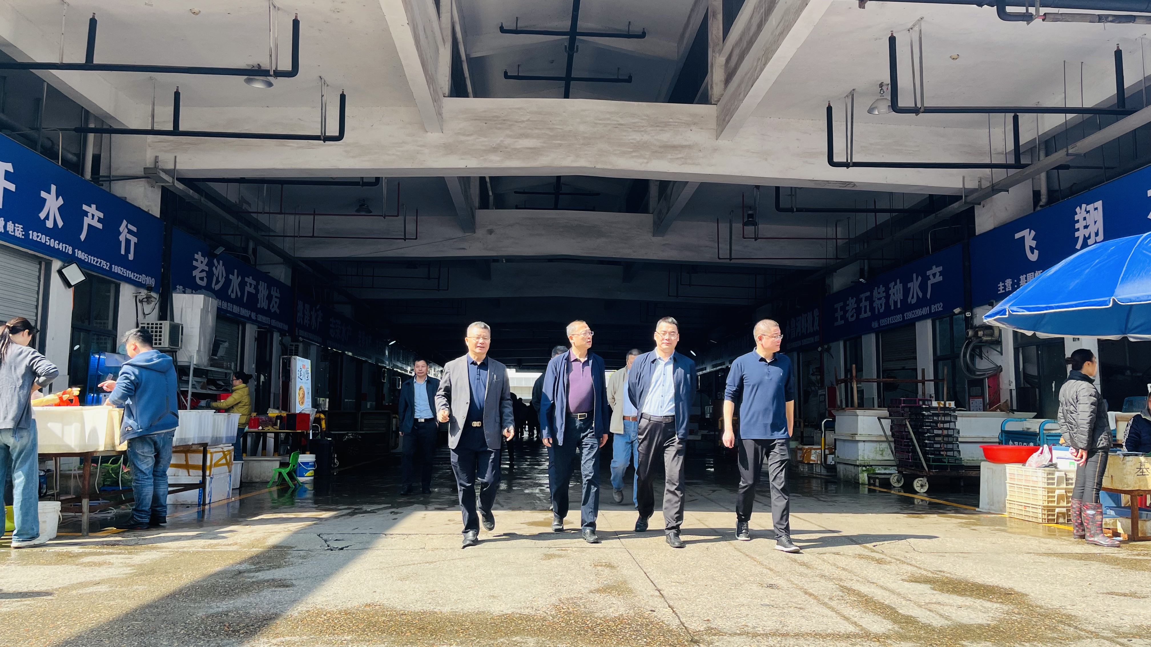 曹立新一行参观了市场大数据平台,听取了市场建设情况汇报并通过数据大屏观看了市场“港城厨房”线上交易平台运行展示,实地走访了市场水产区、检测中心、农产品溯源查验点。对青草巷市场现代化管理模式、信息化平台搭建工作以及食品安全溯源体系的建立表示肯定。
